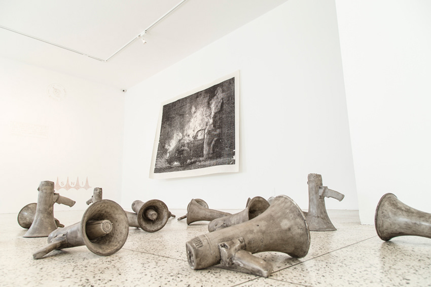 Na obra o processo de comunicação é quebrado pela materialidade da obra. Já não é possível comunicar pois mais que silenciados os megafones concretados são objetos disfuncionais que perderam sua função e encontram-se petrificados como lembranças de discursos que nunca chegaram a emitir. Nesse sentido, sua força está na relação entre materialidade, forma e valor simbólico que transmitem ao olhar.