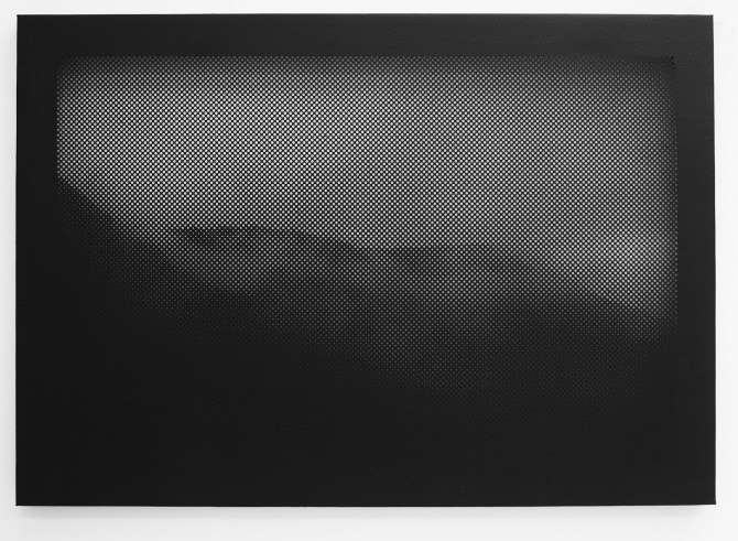 Série de trabalhos que consiste em telas de linho perfuradas a partir de uma retícula de pontos.